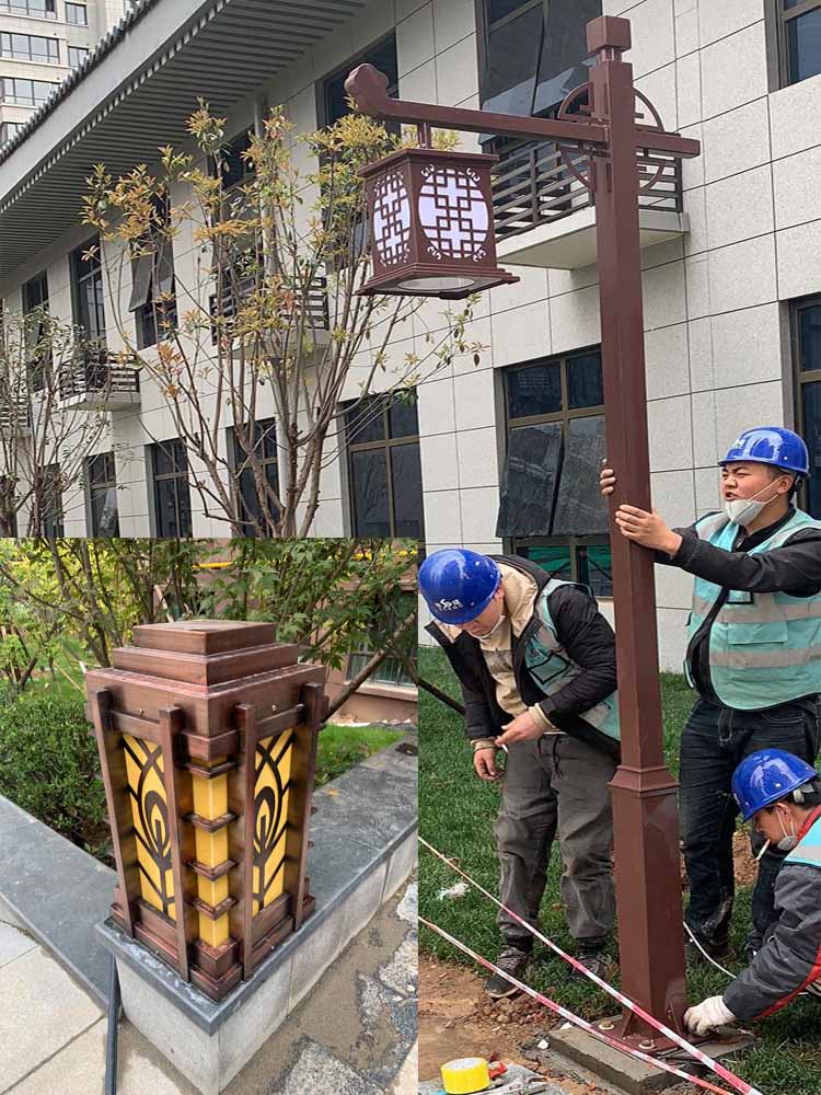 簡(jiǎn)介—— 陜建翠園錦繡庭院燈、柱頭燈項(xiàng)目,是我公司2020年做的地產(chǎn)項(xiàng)目,項(xiàng)目當(dāng)?shù)匚挥谖靼彩虚L(zhǎng)安區(qū)航天大道,該項(xiàng)目的燈具主要是以復(fù)古為主,燈體的顏色采用古銅色,與整個(gè)項(xiàng)目的建筑特點(diǎn)相結(jié)合。