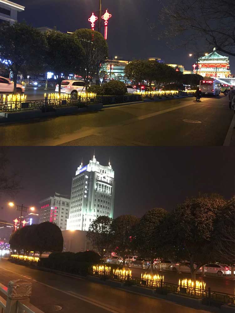 西安蓮湖區(qū)2019年元旦、春節(jié)亮化工程。項目包括鐘鼓樓燈光花籃雕塑,郵政廣場亮化、北大街主干道的亮化。采用了麥穗插地燈、郁金香插地燈、芙蓉花插地燈、小品燈球、串燈等多款造型燈具,共同打造出北大街沿線的夜景風光。